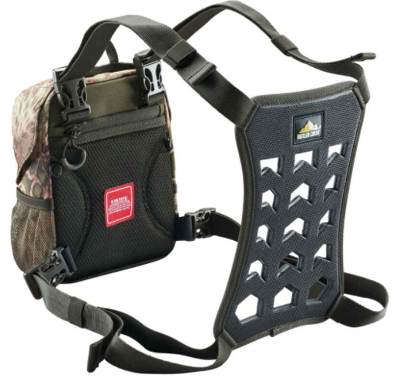 Based off our successful Bino Harness, the new Butler Creek Featherlight Bino Caddy allows quick one-handed access to your optics. Using strong magnets, the front lid folds down securely out of the way with another magnet allowing optics to be supported in the open reinforced pouch. Your binoculars stay safe and secure with our quick disconnect, removable safety straps. Fully secure your binoculars by simply pulling up the front lid until the magnets engage. With a mesh interior zippered pocket an elastic interior side pouch with cleaning cloth, and a rear zippered pocket, there is ample storage for your hunting license, maps, or anything else you wish to carry. Attach your Rangefinder pouch to the side d-loops or front and side MOLLE webbing to have all your optics readily accessible.