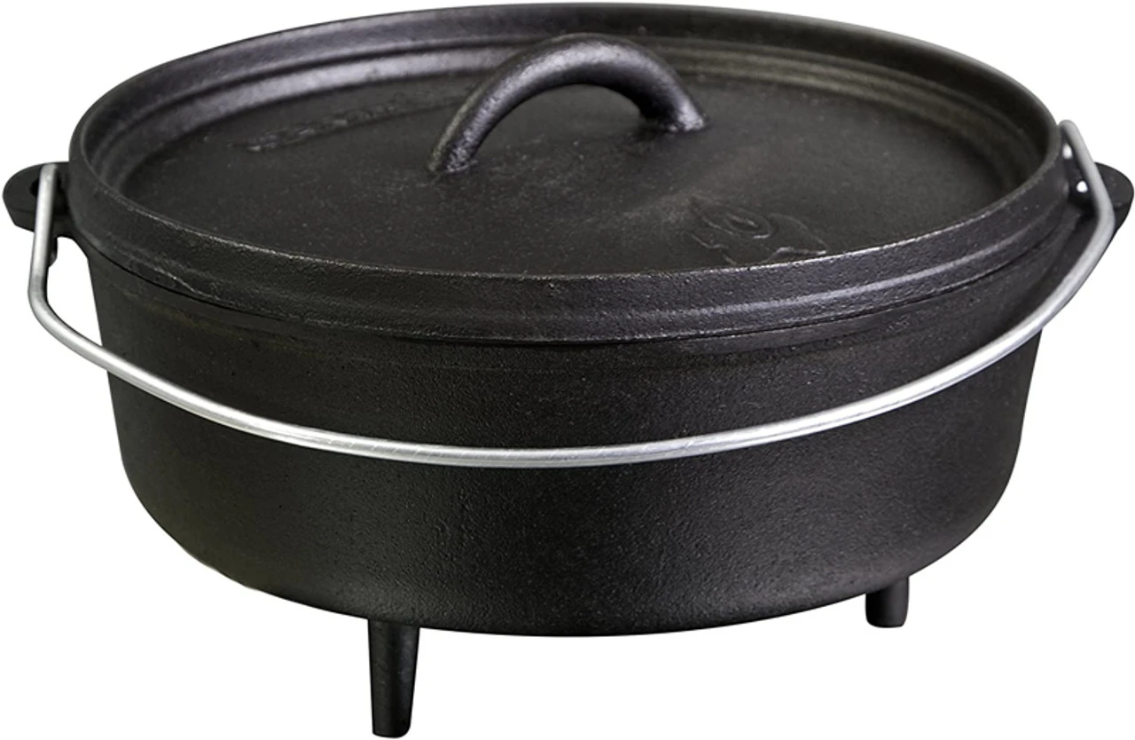 Dutch oven cooking allows you to prepare the heartiest meals that are only achieved with cast iron cookware. Use this four-quart, 10â Dutch oven for your family favorite recipes. This cast iron piece has a flange on the lid making it excellent for cooking with charcoal briquettes or wood. Each piece of Camp Chef cast iron cookware comes pre-seasoned with our âTrue Seasoned Finishâ providing a natural, easy-release surface that is ready to cook on.