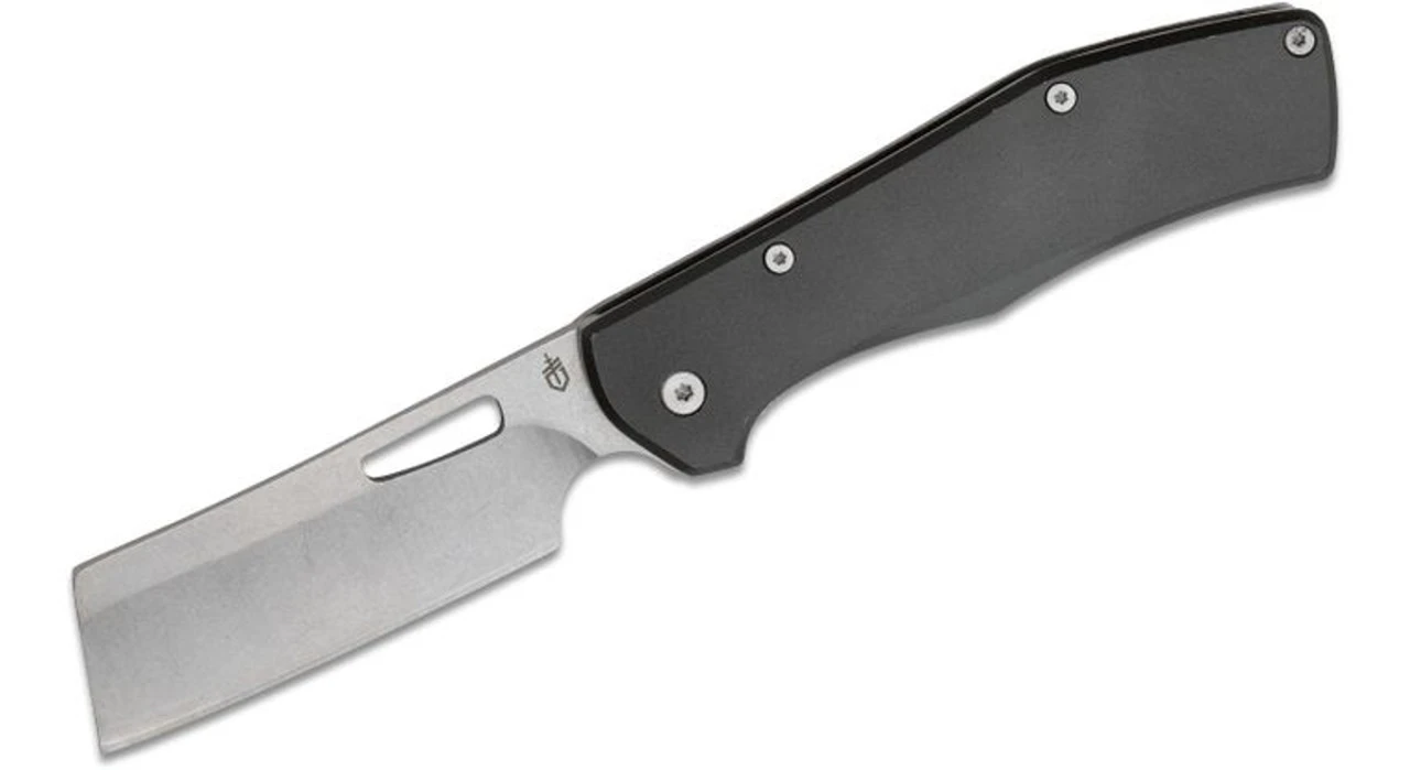 Folding cleavers are the next hot trend in the knife industry. Gerber’s (Cleaver Folder) features a robust 3.8″ blade, a machined aluminum handle and a sturdy stainless steel frame lock design. The reverse curvature of the knife’s spine keeps your knuckles away from the cutting surface, allowing to cut and chop with precision.