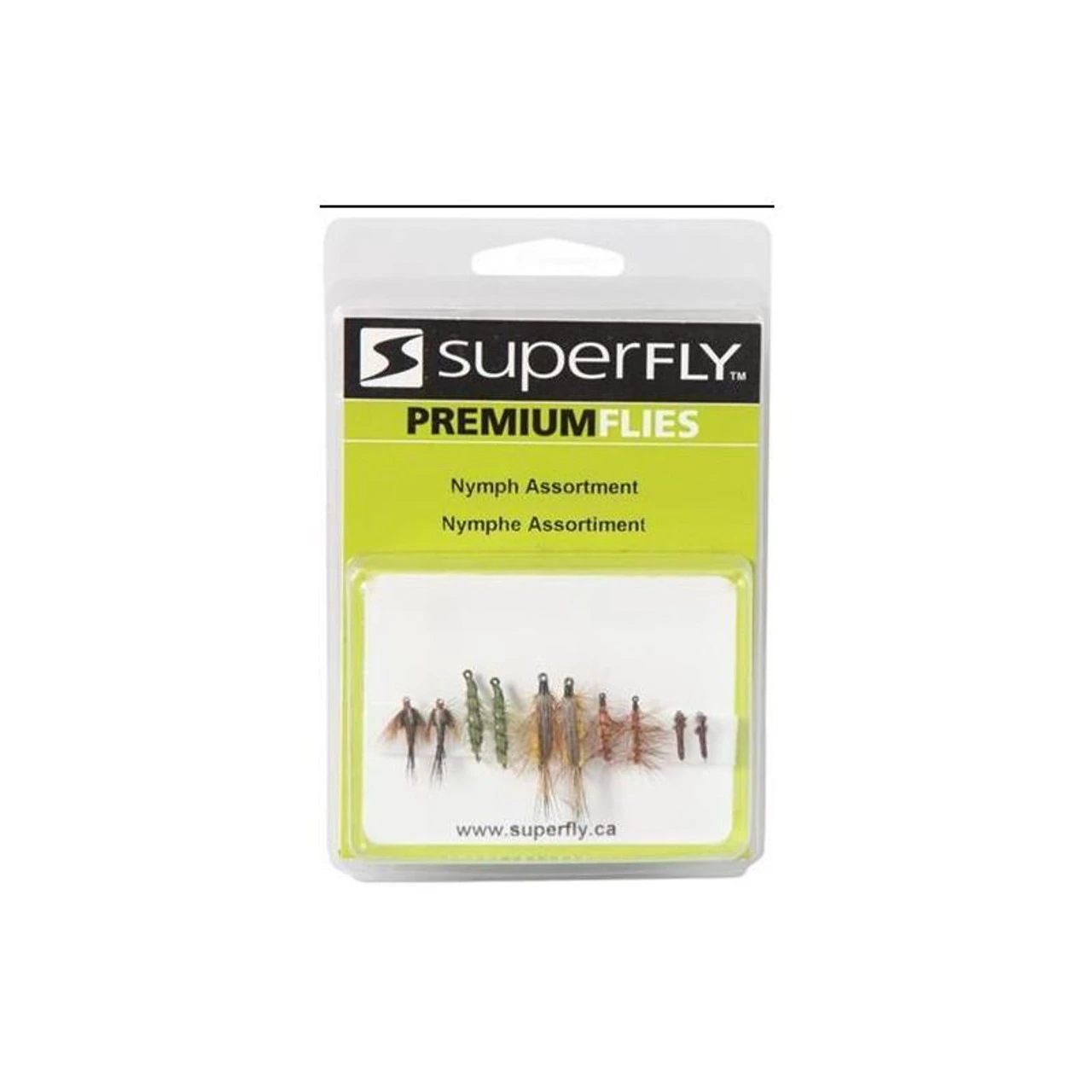The nymphs in the SuperFly 10pc Nymph Assortment imitate subsurface prey, including aquatic insect larva. These nymphs are great for fishing on or near the bottom of lakes or rivers and can be used with a variety of lines on rivers, streams and lakes.