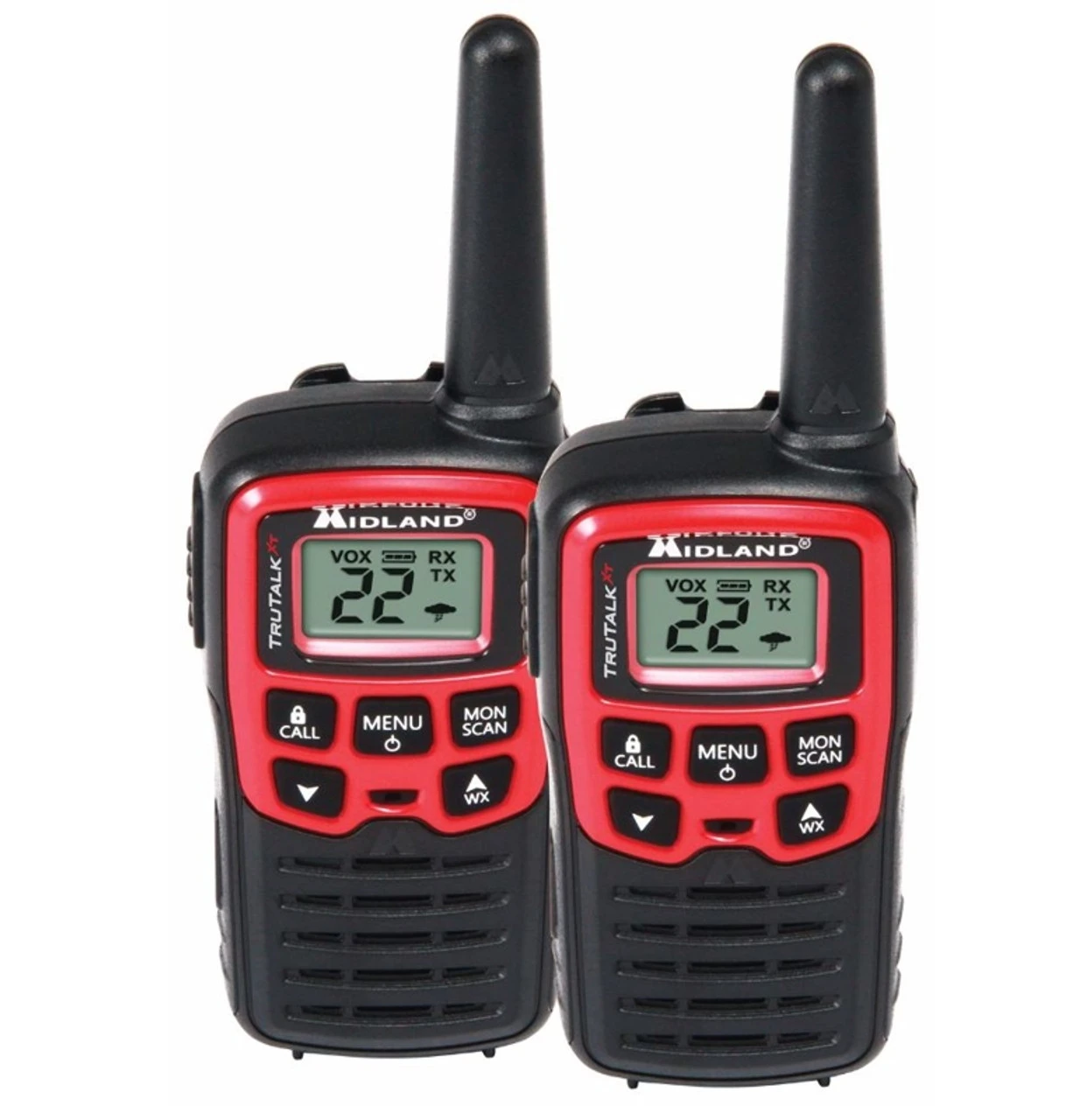Midland⢠X-Talker T31 GMRS Handheld 2-Way Radios keep you connected when your outdoor adventures take you beyond the grid. Whether you’re hunting bull elk in the expansive northwest or just trying to keep in contact with family members on your next great vacation, the Midland X-Talker T31 features up to a 26 mile range in optimum conditions, 22 channels, 38 privacy codes, and channel scan ensure you’re never completely aloneâunless you want to be. The X-Talker T31 GMRS Handheld 2-Way Radios feature Clearband technology, Midland’s legendary weather alert system, auto-squelch, roger beep, eVox hands-free operation, and an integrated headphone jack. Includes 6 rechargeable, replaceable 300mA NIMH AAA batteries, and unique “Y” USB cable charger for dual charging.