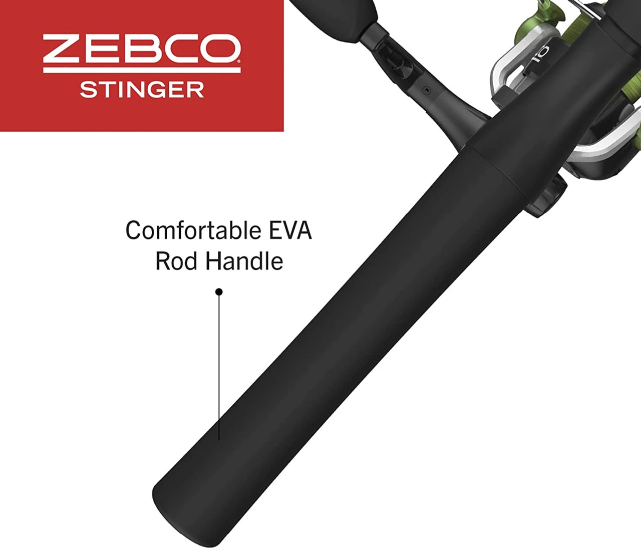 Zebco Stinger Spinning Reel And 2-Piece Fishing Rod Combo, Durable Fiberglass Rod With EVA Handle, Quickset Anti-Reverse Fishing Reel With Ball Bearing Drive